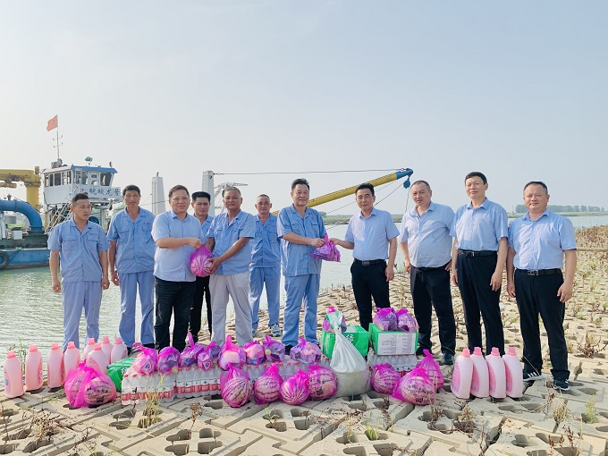 7月19日,公司黨委副書記、總經理杜海峰,公司黨委委員、副總經理董雙武赴引江濟淮疏浚項目“皖蛟龍?zhí)枴贝犖繂枴?/span>送清涼”