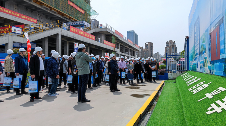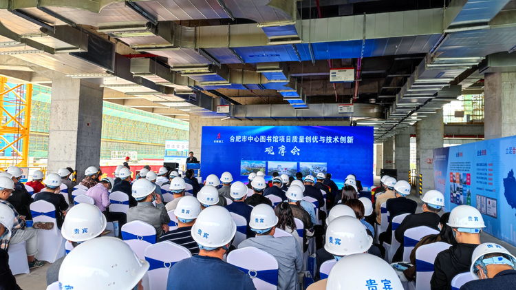 在現(xiàn)場觀摩中,觀摩人員依次參觀了材料樣品展示區(qū)、土建安裝裝飾實體樣板、質(zhì)量標準化控制展板,并登上圖書館主樓三層作業(yè)面,參觀了主體結(jié)構(gòu)成型、二次結(jié)構(gòu)施工、水電安裝工藝等施工情況,詳細了解了材料、工藝及質(zhì)量標準化控制及科研課題開展情況。