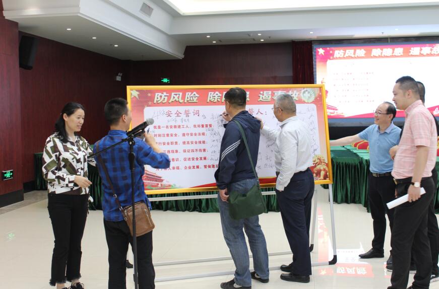 孫學(xué)軍帶領(lǐng)大家進(jìn)行了莊嚴(yán)的安全宣誓。隨著安全承諾簽名的開(kāi)展,2019年“安全生產(chǎn)月”系列活動(dòng)的帷幕正式拉開(kāi)。