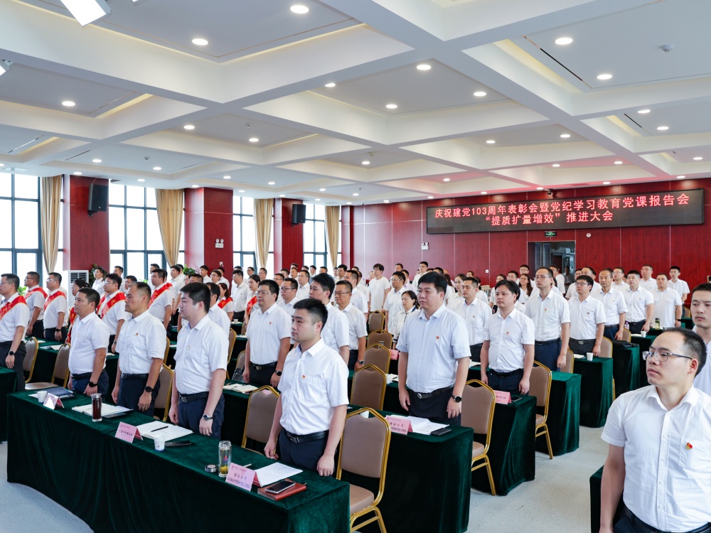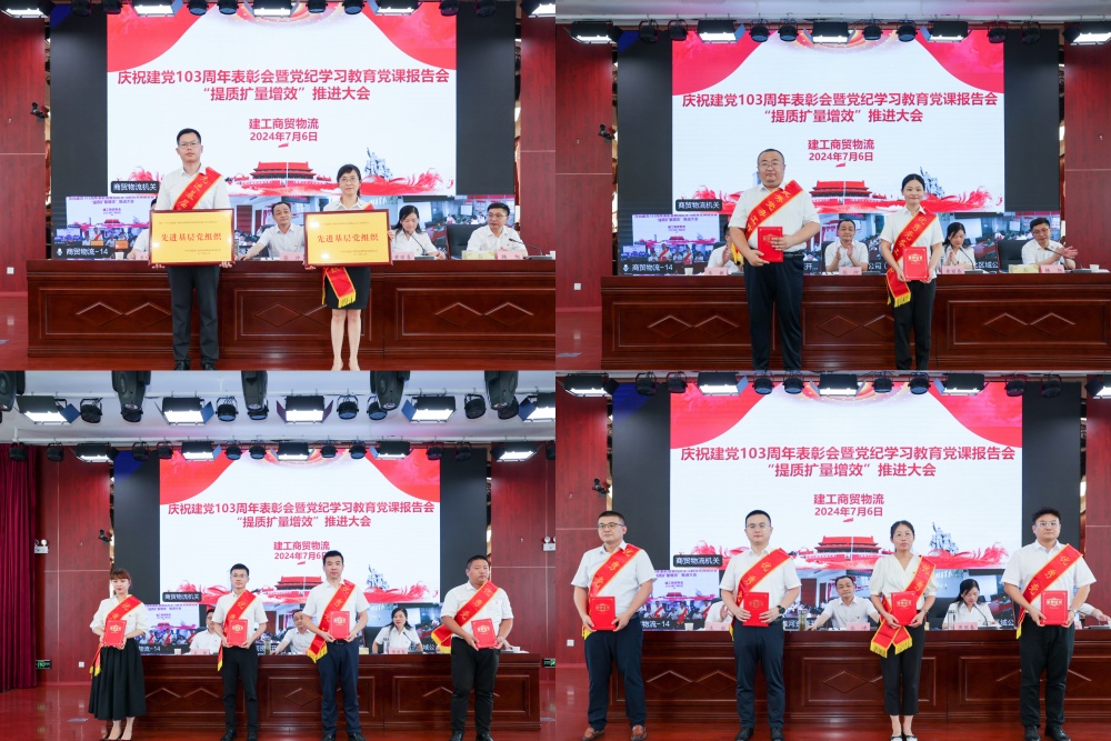 7月6日周六,建工商貿(mào)物流黨委多會合一分階段召開慶祝建黨103周年表彰會暨黨紀(jì)學(xué)習(xí)教育黨課報告會、警示教育大會和“提質(zhì)擴量增效”推進大會。建工股份副總經(jīng)理、公司黨委書記、董事長張沖作黨紀(jì)學(xué)習(xí)教育黨課報告并部署提質(zhì)擴量增效工作,黨委副書記、副總經(jīng)理黃麗春主持會議,紀(jì)委書記韓旭作警示教育報告,副總經(jīng)理朱敏等安排工作。