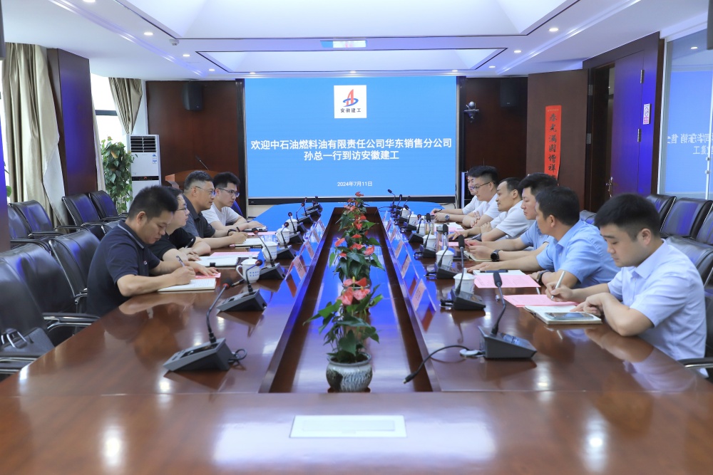 7月11日下午,中石油燃料油有限責任公司華東銷售分公司黨委書記、總經(jīng)理孫一到訪建工商貿物流,建工股份副總經(jīng)理、商貿物流黨委書記、董事長張沖舉行工作會談推進合作。