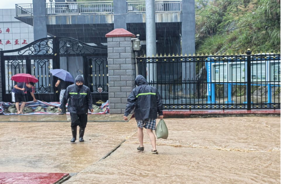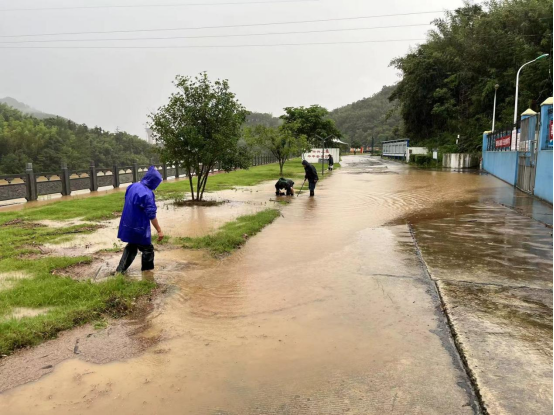 白蓮崖水電站進場公路積水較深,廠房后坡排水壓力較大,工作人員立即前往生產(chǎn)區(qū)布放防汛沙袋,疏通排水通道,并在進場公路的路口設置警示牌,提示過往車輛及行人注意安全。同時加強周邊巡查防守,及時掌握塌方及泥石流等地質災害點最新情況,做好應急預案。