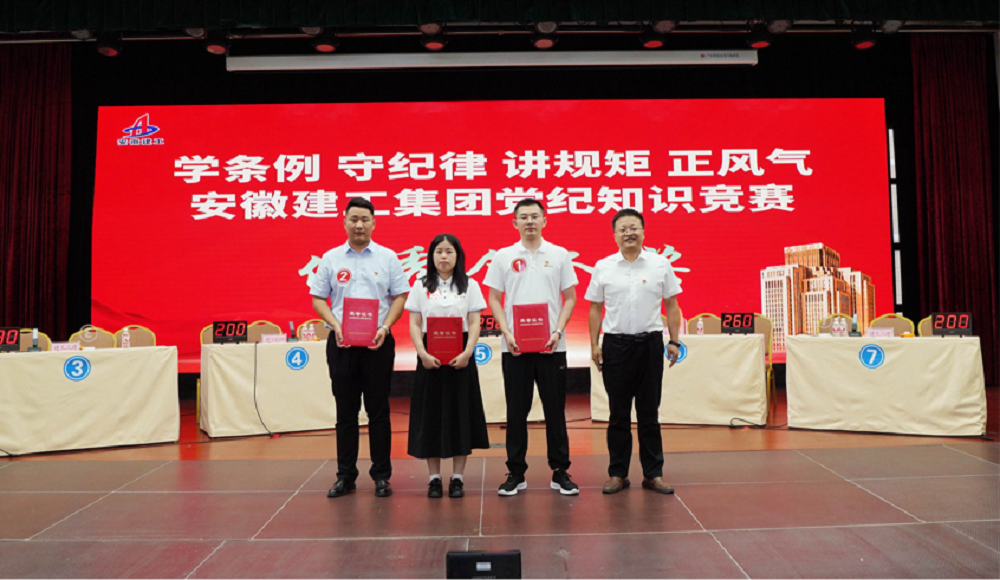 7月17日下午,由安徽建工集團(tuán)黨委主辦,安徽建工建設(shè)投資集團(tuán)黨委承辦的“學(xué)條例 守紀(jì)律 講規(guī)矩 正風(fēng)氣”黨紀(jì)知識(shí)競賽落下帷幕,來自集團(tuán)系統(tǒng)的24支隊(duì)伍經(jīng)過預(yù)賽、決賽的激烈角逐,由水建分公司的徐鵬、朱奇和全椒建投的吳瑩組成的公司代表隊(duì)榮獲二等獎(jiǎng),其中水建分公司朱奇獲優(yōu)秀個(gè)人獎(jiǎng)。在備賽過程中,三位隊(duì)員充分彰顯黨員精神,持續(xù)不斷地充實(shí)自身的知識(shí)儲(chǔ)備。他們堅(jiān)韌不拔、砥礪奮進(jìn)的精神風(fēng)采,展現(xiàn)了公司黨員的優(yōu)良形象,更為公司贏取了榮譽(yù)。