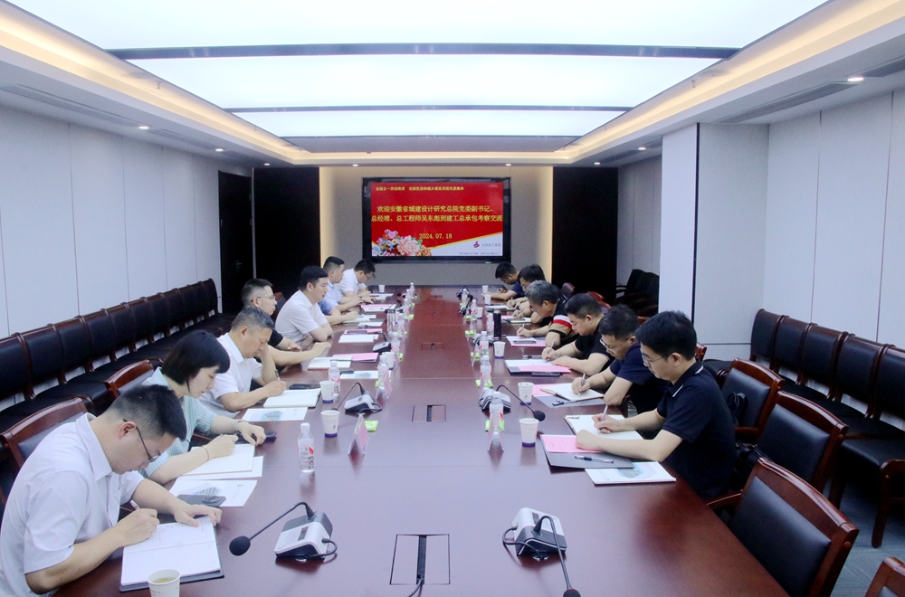 7月18日下午,安徽省城建總院黨委副書記、總經理、總工程師吳東彪一行到訪建工總承包,公司黨委書記、總經理傅宏林熱情接待,并舉行工作會談。