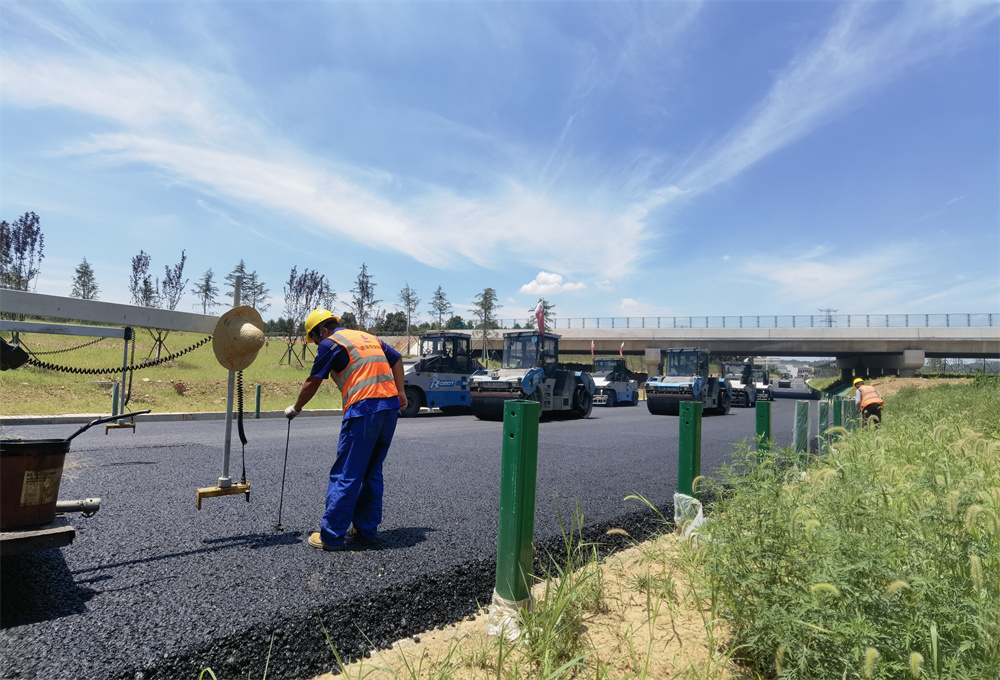 連日來(lái),氣溫連續(xù)攀升,為按時(shí)保質(zhì)保量完成施工計(jì)劃,完成主線瀝青中面層攤鋪任務(wù),設(shè)備租賃公司宣涇高速01標(biāo)操作人員不畏“烤”驗(yàn),面對(duì)超過(guò)140攝氏度的瀝青路面,通過(guò)手測(cè)松鋪,控制瀝青攤鋪厚度。