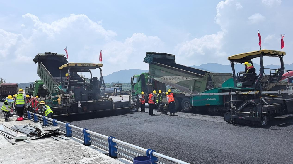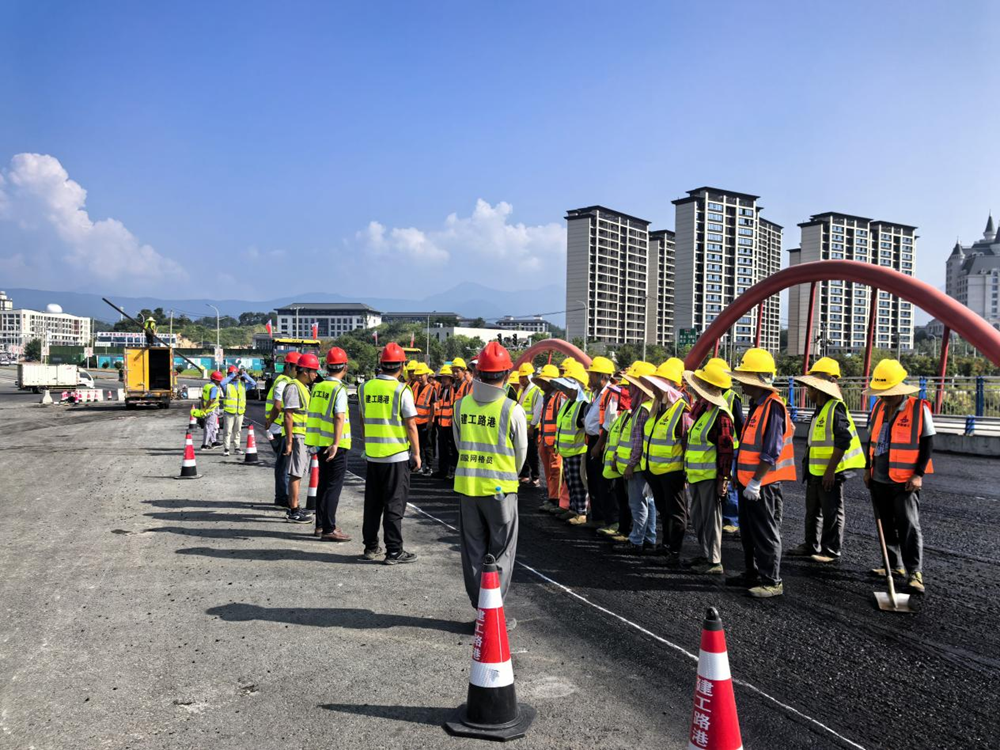 瀝青路面的上面層是整個瀝青路面攤鋪過程中質(zhì)量要求最高、施工工藝要求最嚴格的一道工序。項目公司督促各參建單位嚴格把控進場原材質(zhì)量,選擇經(jīng)驗豐富的作業(yè)班組,配備性能優(yōu)良的機械設(shè)備,優(yōu)化施工方案,科學組織施工,同時對現(xiàn)場技術(shù)管理人員、一線操作人員進行了詳細的技術(shù)和安全交底,確保瀝青攤鋪順利進行。