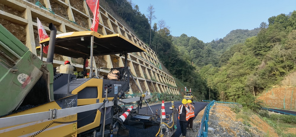 伴隨最后2.54公里面層的順利完工,牛嶺水庫項目道路瀝青攤鋪工作已階段性完成。由于施工現(xiàn)場與后場間距60公里,施工路段彎道居多,路面寬度變化大,施工區(qū)域內(nèi)長達七公里的通訊信號中斷給前后場施工以及運輸協(xié)調(diào)帶來巨大挑戰(zhàn)。為了克服這一路程上的困難,項目瀝青拌合站操作人員每日凌晨一點就準時點火開機,凌晨兩點混合料準點發(fā)出,充足的準備,為生產(chǎn)物料的高效供給提供了堅強保障。