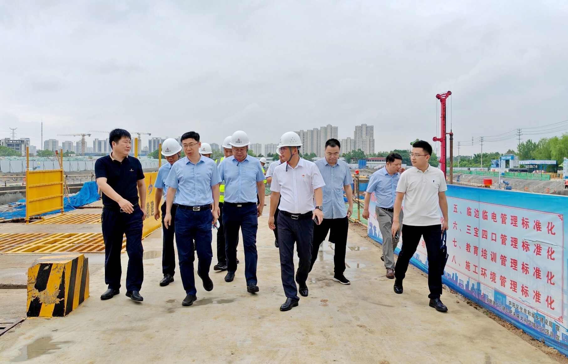 在項(xiàng)目現(xiàn)場(chǎng),楊丙紅聽取了項(xiàng)目負(fù)責(zé)人關(guān)于施工進(jìn)度的匯報(bào),詳細(xì)了解了工程建設(shè)的各個(gè)環(huán)節(jié)。他強(qiáng)調(diào),安全是項(xiàng)目建設(shè)的生命線,質(zhì)量是項(xiàng)目的根本保障。項(xiàng)目部要嚴(yán)格落實(shí)安全生產(chǎn)責(zé)任制,多措并舉抓好安全生產(chǎn)工作,守牢安全防線。同時(shí),各方要加強(qiáng)溝通協(xié)調(diào),全力以赴,確保項(xiàng)目按計(jì)劃有序推進(jìn),嚴(yán)格把控工程質(zhì)量,堅(jiān)持以高標(biāo)準(zhǔn)、嚴(yán)要求打造優(yōu)質(zhì)工程,為合肥未來大科學(xué)城片區(qū)的建設(shè)貢獻(xiàn)力量。(謝陳晨)
