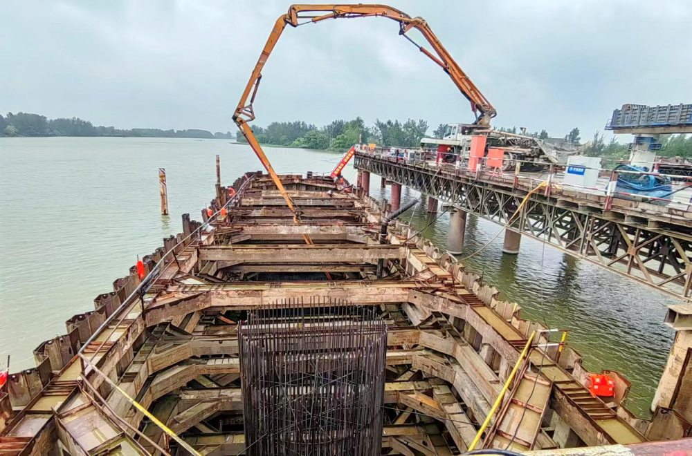 8月28日10時(shí)25分,經(jīng)過20個(gè)小時(shí)不間斷地澆筑,安徽水利亳蒙高速項(xiàng)目渦河1#大橋19號(hào)主墩承臺(tái)混凝土澆筑完美收官,標(biāo)志著大橋控制性工程建設(shè)進(jìn)入嶄新階段。