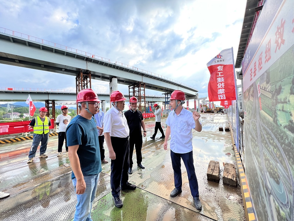 在涇青高速一分部,任杰實(shí)地查看了項(xiàng)目控制性工程涇縣樞紐和技術(shù)難度大的鋼箱梁頂推施工現(xiàn)場(chǎng),詳細(xì)聽(tīng)取了項(xiàng)目建設(shè)匯報(bào),對(duì)項(xiàng)目團(tuán)隊(duì)利用河道枯水窗口期,搶抓水中橋梁下部構(gòu)造施工,協(xié)調(diào)高速各方利用收費(fèi)站閘口作為進(jìn)場(chǎng)便道,“動(dòng)腦筋”節(jié)約成本的做法表示肯定。