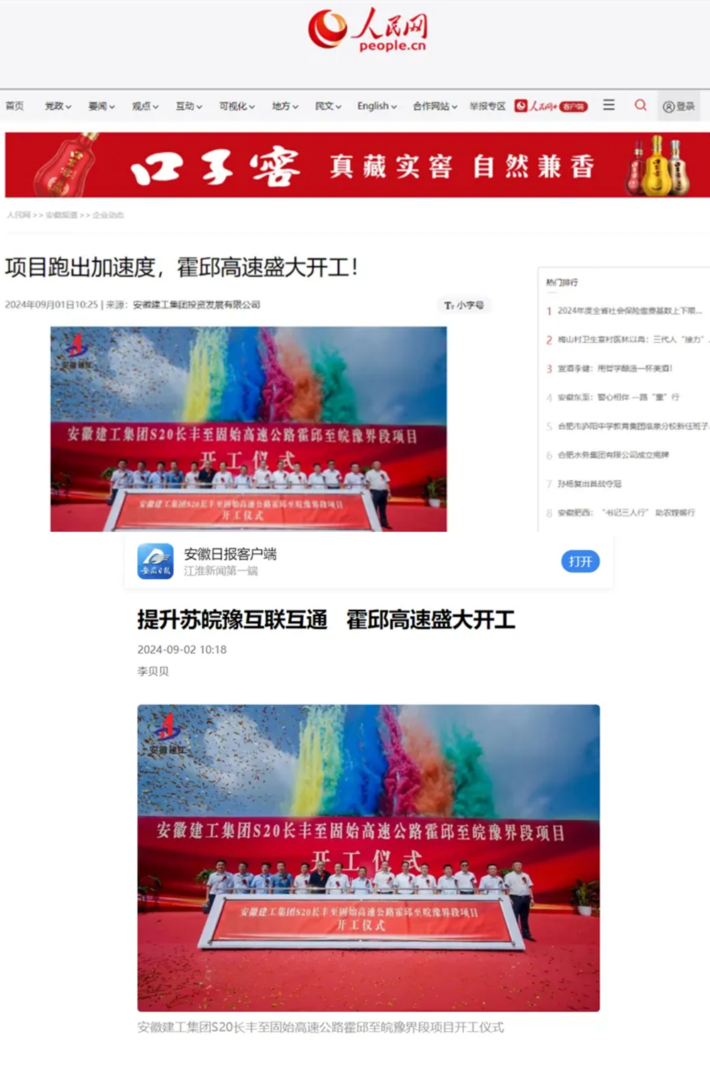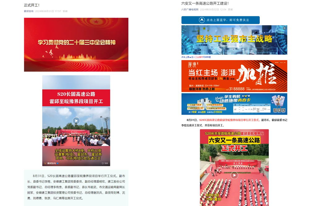 近日,人民網(wǎng)、安徽日?qǐng)?bào)及六安、霍邱等有關(guān)媒體紛紛聚焦安徽建工投資建設(shè)的S20長(zhǎng)固高速公路霍邱至皖豫界段項(xiàng)目開(kāi)工儀式。六安市副市長(zhǎng)、霍邱縣委書(shū)記李煜出席開(kāi)工儀式并宣布項(xiàng)目開(kāi)工。建工控股黨委委員、副總經(jīng)理盛明宏,霍邱縣委副書(shū)記、縣長(zhǎng)韋能武,建工股份黨委副書(shū)記、副董事長(zhǎng)、總經(jīng)理李有貴,建工投資黨委書(shū)記、總經(jīng)理謝洪兵等有關(guān)領(lǐng)導(dǎo)出席開(kāi)工儀式。