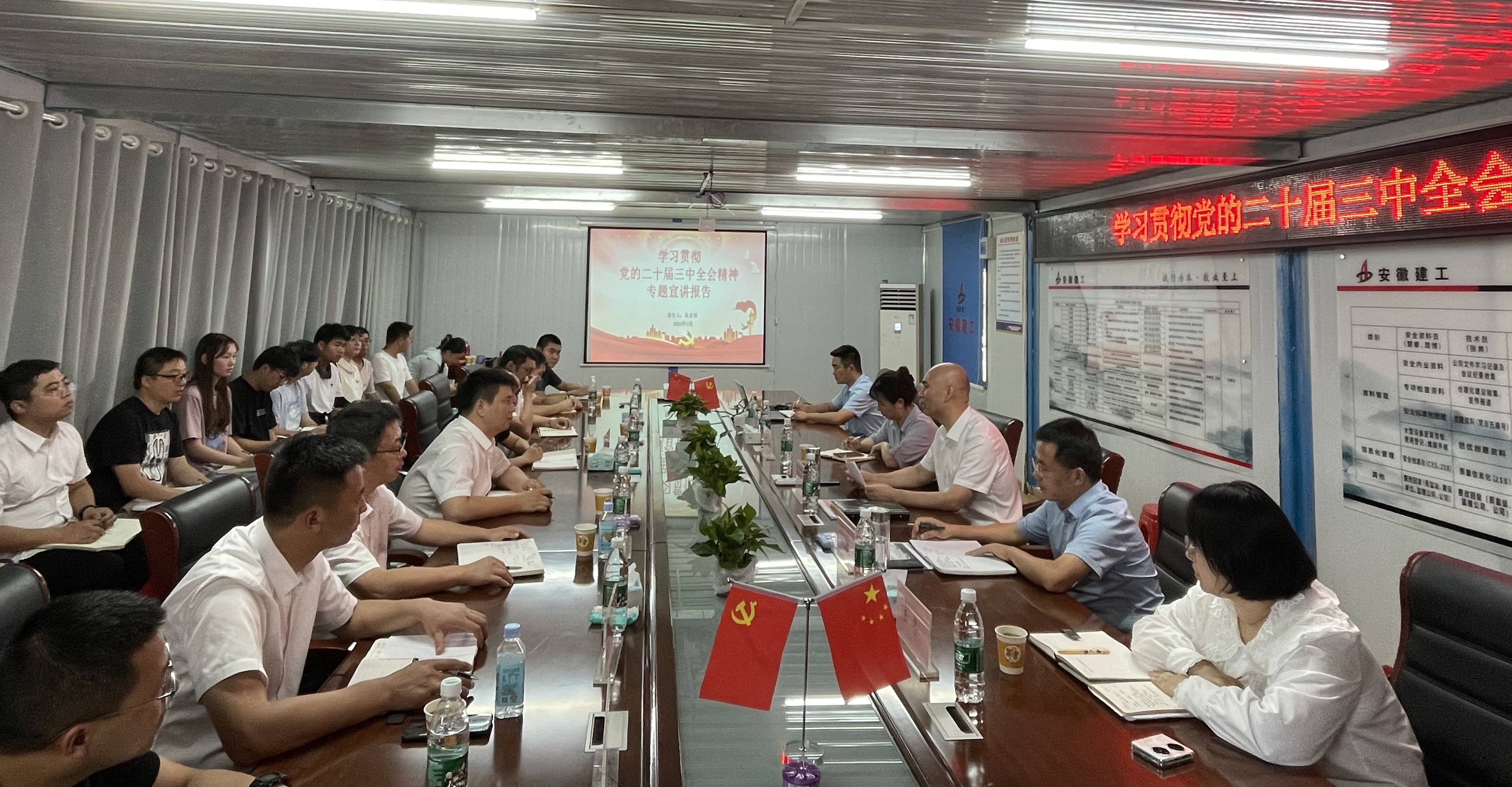 下午,朱忠明在宿徐園區(qū)城鎮(zhèn)一體化A、B地塊項目會議室集中宣講黨的二十屆三中全會精神,并結(jié)合公司當(dāng)前實際情況,深入分析解讀公司三年發(fā)展目標和五項年度重點任務(wù)。