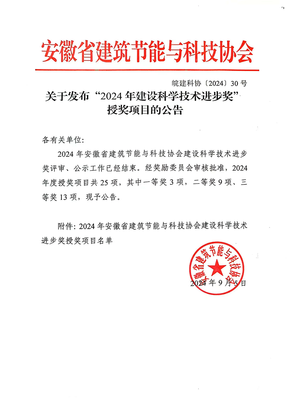 該獎項是由安徽省建筑節(jié)能與科技協(xié)會設(shè)立的一項科技獎項,旨在表彰和獎勵為促進(jìn)全省建設(shè)行業(yè)科技進(jìn)步做出突出貢獻(xiàn)的單位和個人。