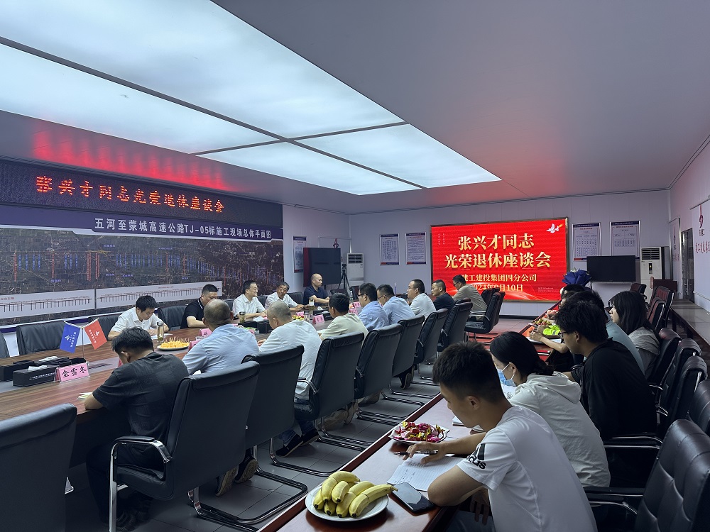 9月10日,建工建投集團(tuán)四分公司在五蒙高速05標(biāo)項(xiàng)目為張興才同志舉辦退休職工座談會(huì)。公司黨委副書(shū)記、工會(huì)主席干戈、四分公司領(lǐng)導(dǎo)班子及項(xiàng)目代表參加本次座談會(huì)。