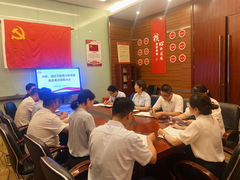 為深入貫徹全面從嚴(yán)治黨要求,強(qiáng)化紀(jì)律規(guī)矩意識,教育引導(dǎo)黨員干部職工筑牢思想防線,嚴(yán)防“節(jié)日腐敗”,營造“文明、健康、清廉、和諧”節(jié)日氛圍,9月9日下午,合肥酒店黨支部組織召開節(jié)前集體廉潔提醒談話,進(jìn)一步警醒大家要始終繃緊廉潔之弦。