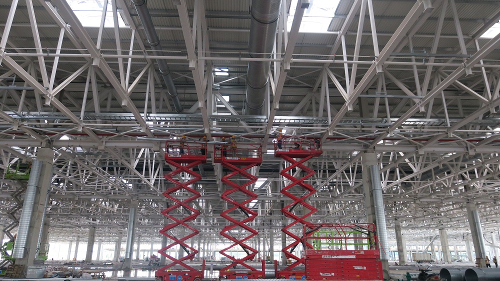 在建工安裝合肥經(jīng)開區(qū)臨湖智能制造產(chǎn)業(yè)園項(xiàng)目現(xiàn)場,項(xiàng)目部管理人員及水電班組、通風(fēng)班組、消防班組、虹吸雨水班組施工人員夜以繼日加班加點(diǎn)搶抓進(jìn)度。30名項(xiàng)目管理人員,226名施工人員,96輛登高機(jī)械,采取“白加黑” 、“5+2”模式施工作業(yè),確保各區(qū)域各專業(yè)施工生產(chǎn)穩(wěn)步推進(jìn)。 目前正在進(jìn)行車間一通風(fēng)系統(tǒng)、雨水系統(tǒng)、消防系統(tǒng),壓縮空氣與循環(huán)水系統(tǒng)等安裝作業(yè),站房一同步開展管線預(yù)埋與預(yù)制工作。本周已完成車間一風(fēng)管安裝約4200平方米,雨水管道安裝約1100米,消防管道安裝約590米,橋架安裝約600米。
