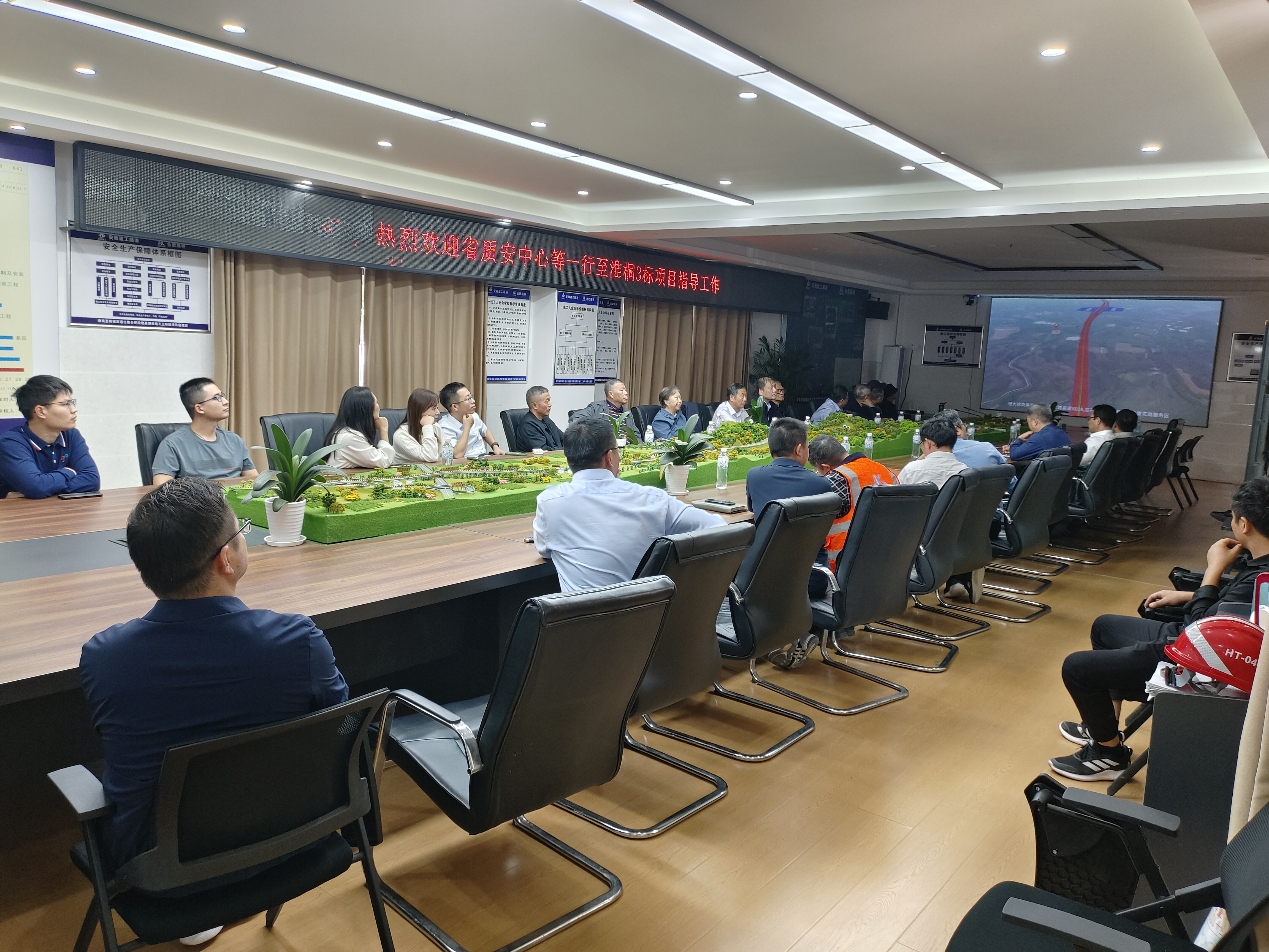 高學(xué)華一行首先參觀了紫蓬山隧道口施工現(xiàn)場(chǎng),聽取了項(xiàng)目部關(guān)于隧道概況及當(dāng)前施工進(jìn)展匯報(bào),隨后在會(huì)議室觀看項(xiàng)目施工動(dòng)畫、航拍視頻并就當(dāng)前施工的重難點(diǎn)展開了座談交流。