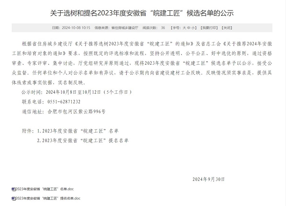 近日,安徽省住房和城鄉(xiāng)建設(shè)廳發(fā)布2023年度安徽省“皖建工匠”候選名單,建工建投集團姚啟海被命名為“皖建工匠”,李健獲“皖建工匠”提名。