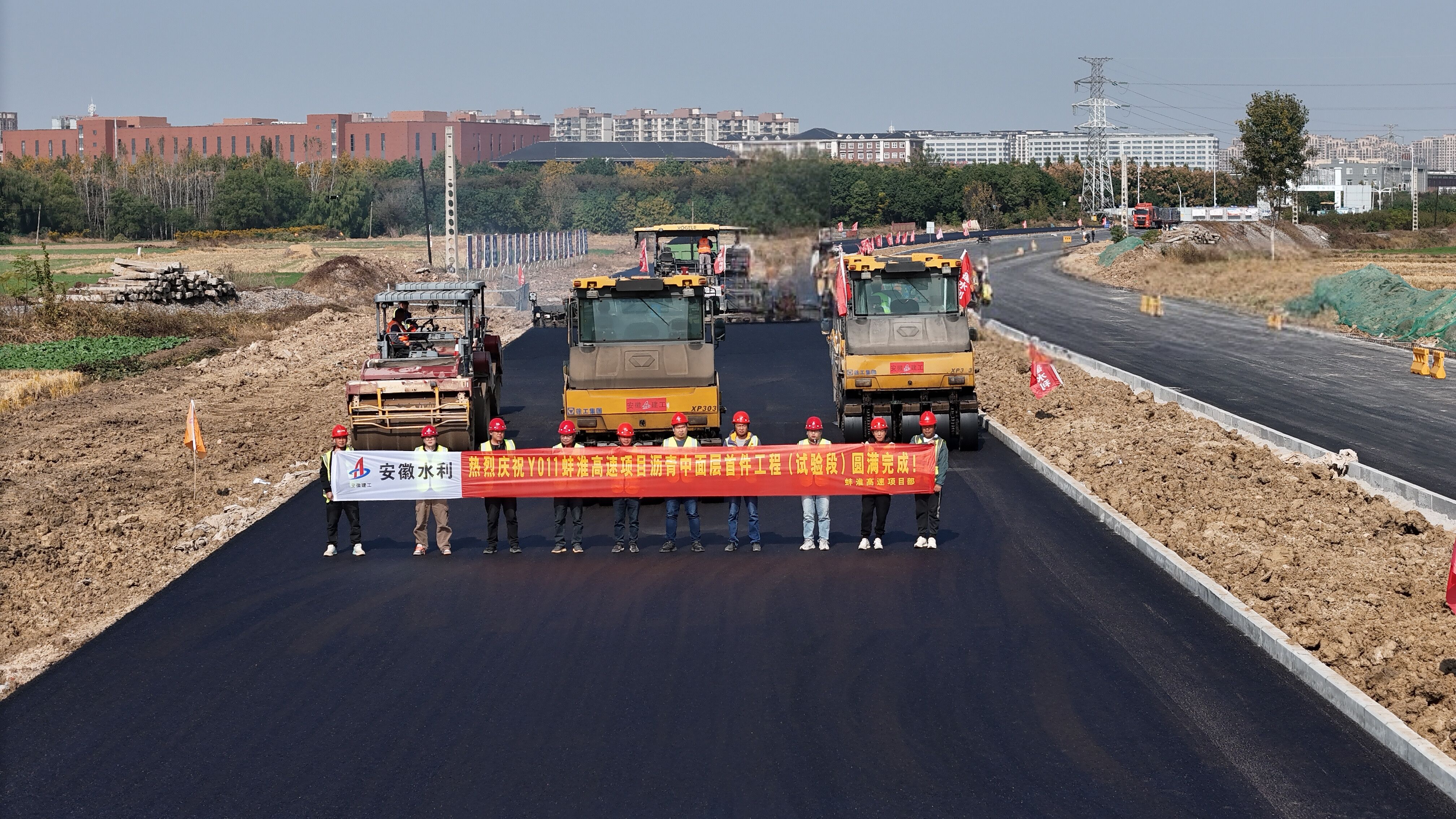 11月5日,安徽水利Y011蚌淮高速項目順利完成瀝青中面層(試驗段)攤鋪作業(yè),實現(xiàn)項目建設“再提速”。