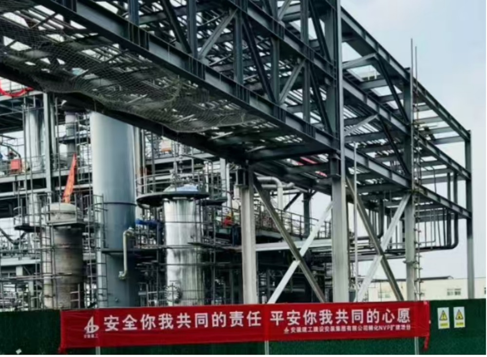肥東中鹽紅四方項目位于中鹽安徽紅四方股份有限公司精化廠區(qū)內預留地。本項目施工內容為項目界區(qū)內鋼結構NVP主裝置、化學品庫、管廊、初期雨水池、界區(qū)內道路、設備基礎、地坪等建筑工程施工及設備、電氣、管道、儀表自控安裝等。