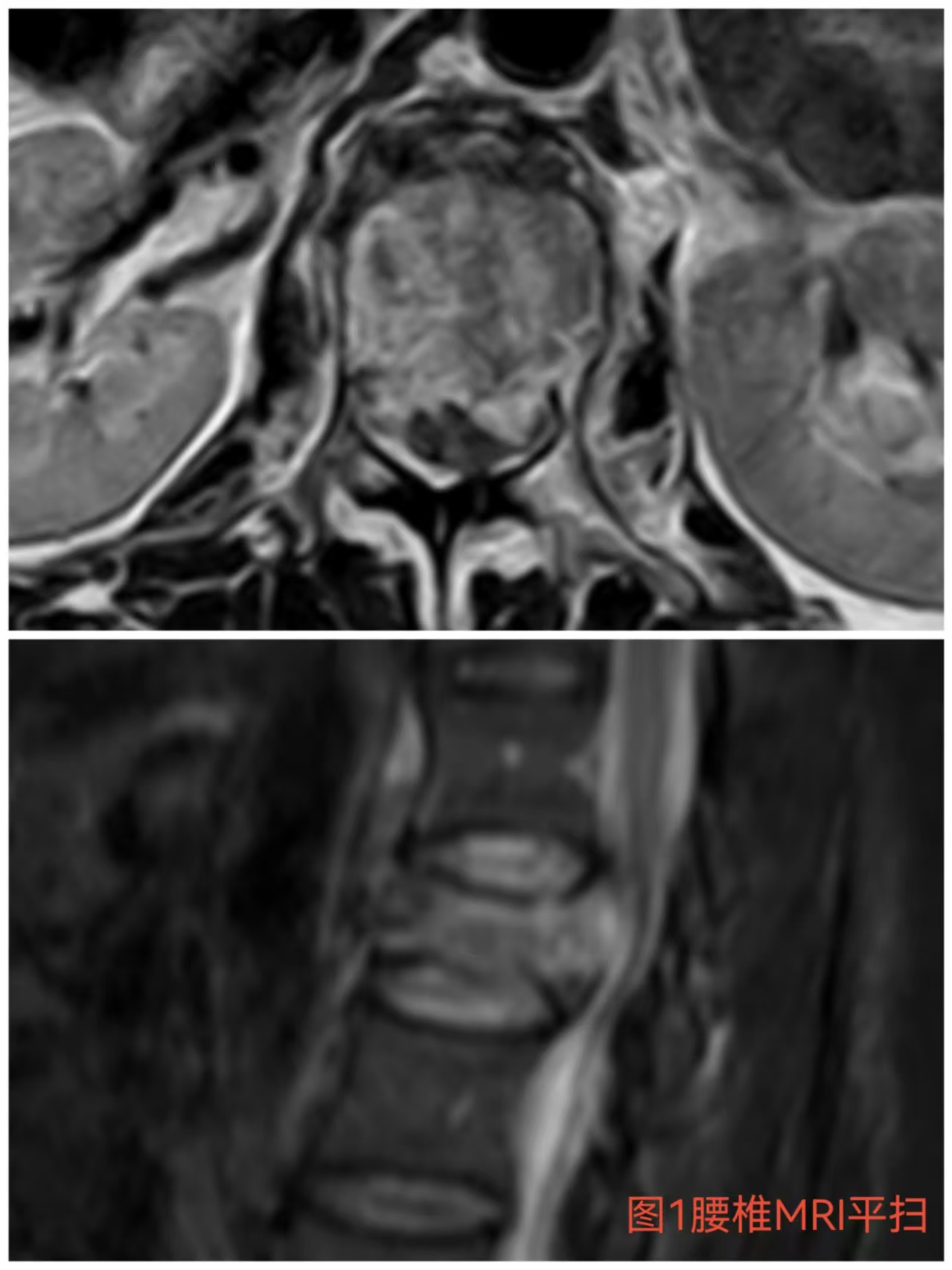 入院時(shí)患者躺在床上不能動(dòng)彈,眼神中透漏著深深的無助,對(duì)于她來說這種傷情無疑是沉重的,尤其是腹股溝以下感覺消失、雙下肢肌力0級(jí),這意味著其下肢無法活動(dòng)及站立,仿佛被命運(yùn)按下了暫停鍵;與病人及家屬充分溝通病情后,第一時(shí)間給予對(duì)癥治療,監(jiān)測(cè)患者生命體征,行腰椎核磁檢查(圖1)提示:腰1椎體爆裂性骨折,椎體后緣塌陷致骨性椎管狹窄,壓迫脊髓神經(jīng),結(jié)合患者病情及輔助檢查可診斷為:“L1椎體爆裂性骨折伴雙下肢截癱”。