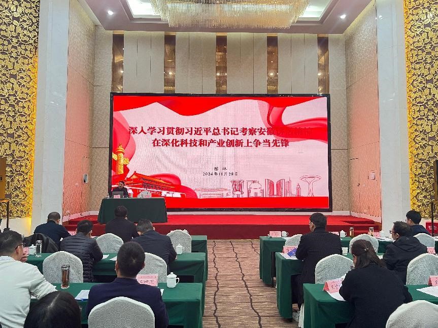 安徽省創(chuàng)新館主任陳林《在深化科技和產(chǎn)業(yè)創(chuàng)新上爭(zhēng)當(dāng)先鋒》的講座,從深刻把握全球科技發(fā)展趨勢(shì)、國(guó)內(nèi)創(chuàng)新區(qū)域科技發(fā)展趨勢(shì),剖析了當(dāng)前發(fā)展新質(zhì)生產(chǎn)力存在的現(xiàn)實(shí)問題,并以無人化智能建造體系關(guān)鍵技術(shù)研究和項(xiàng)目實(shí)踐為例,為建筑業(yè)轉(zhuǎn)型發(fā)展提出了一些參考和建議。安徽科技大市場(chǎng)董事長(zhǎng)王倩以《安徽科技大市場(chǎng)創(chuàng)新組織與實(shí)踐》為題,闡述了科技成果轉(zhuǎn)化、創(chuàng)新場(chǎng)景交易的專業(yè)化路徑。