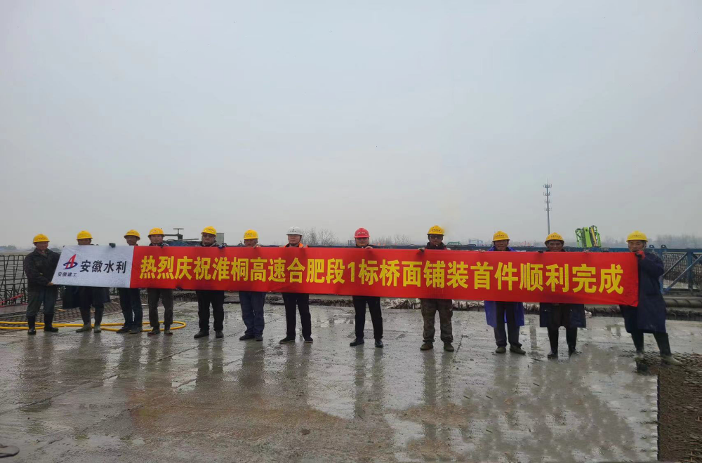 12月4日,安徽水利淮桐高速合肥段1標(biāo)順利完成首件橋面鋪裝工程施工。