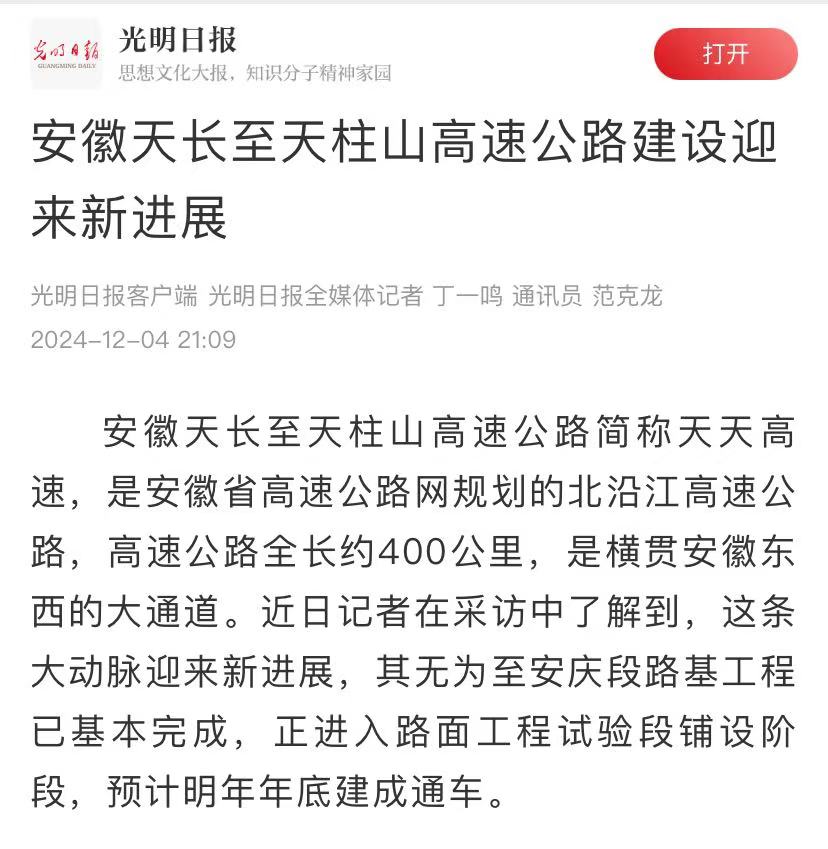 近日,安徽水利天長至天柱山高速公路無為至安慶段路基工程已基本完成,正進入路面工程試驗段鋪設(shè)階段,預(yù)計明年年底將建成通車,受到光明日報、安徽日報、中安在線、大皖新聞等主流媒體關(guān)注報道。