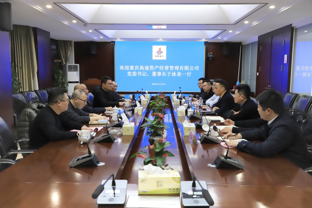 12月9日下午,重慶高速資產(chǎn)經(jīng)營(yíng)管理有限公司黨委書記、董事長(zhǎng)于泳泉一行到訪建工商貿(mào)物流,公司黨委副書記、總經(jīng)理張俊熱情接待并舉行工作會(huì)談。