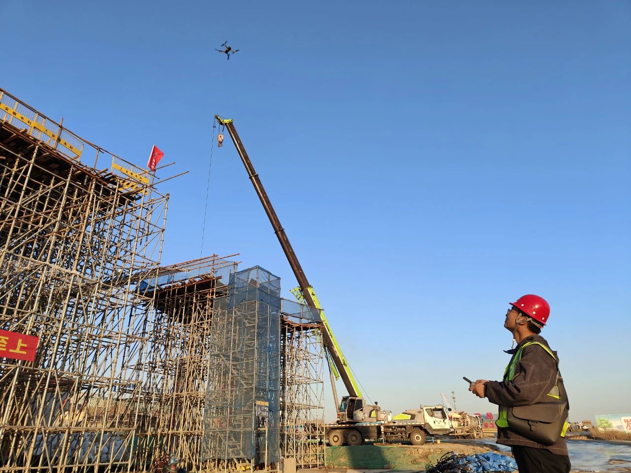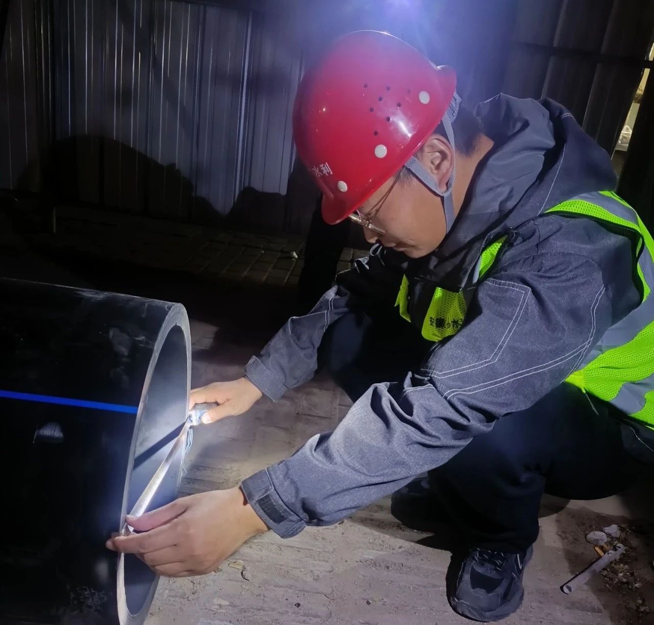 12月9日凌晨1點左右,王杰繞著剛剛澆筑的延安路大橋北岸主線引橋第9聯(lián)底腹板和A匝道第2聯(lián)頂板仔細(xì)巡查一遍,向后場拌和站和項目施工群發(fā)送完報備信息后回到宿舍。