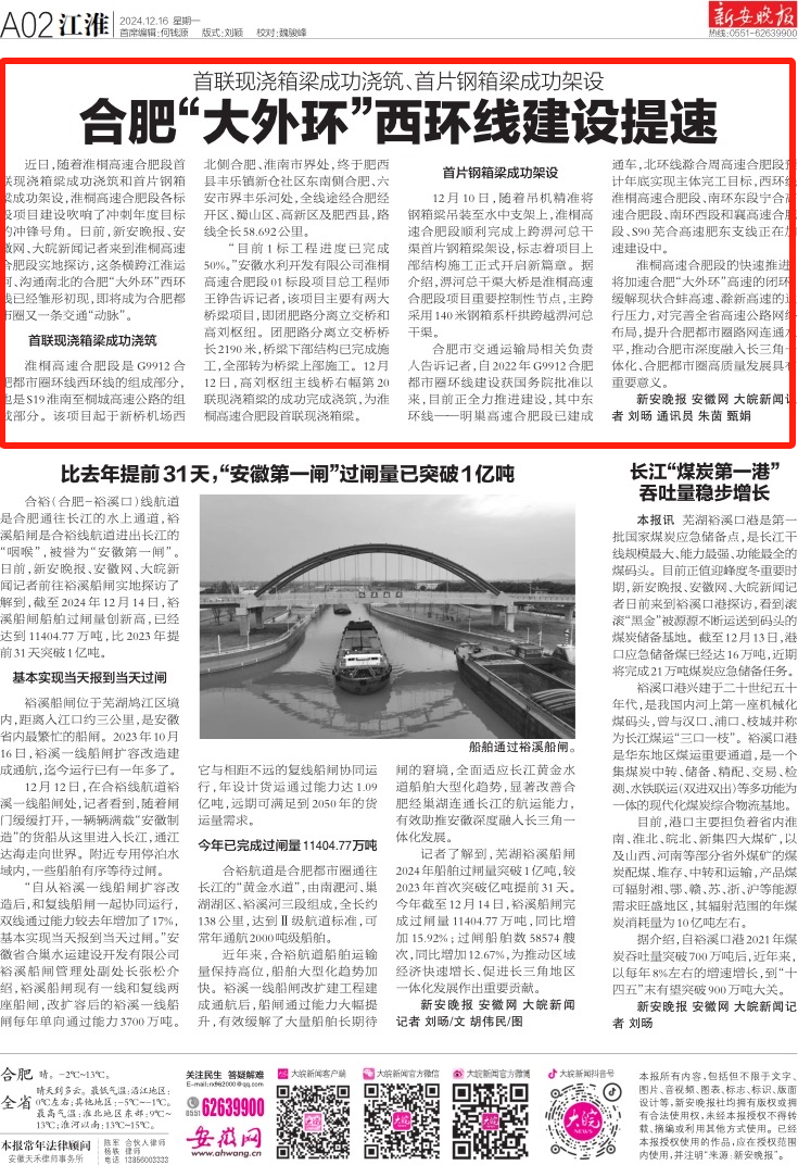 近日,安徽水利承建的淮桐高速合肥段1標(biāo)段首聯(lián)現(xiàn)澆箱梁成功澆筑,全面吹響“決勝四季度”沖鋒號(hào)角,受到安徽日?qǐng)?bào)、新安晚報(bào)等主流媒體關(guān)注報(bào)道。