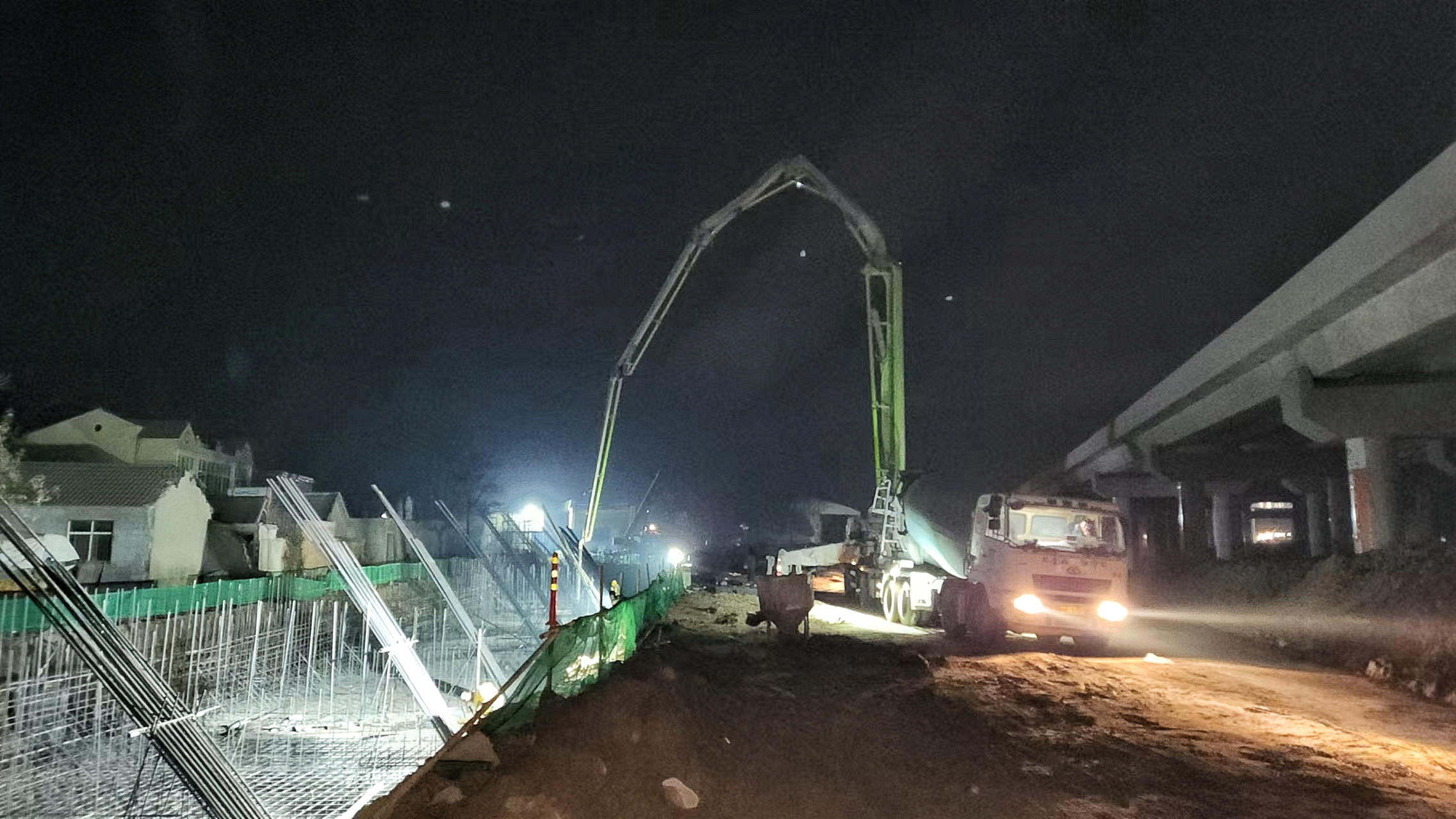 白天,高效協(xié)同、精準(zhǔn)施工。施工現(xiàn)場橋梁區(qū)鋼筋工、澆筑工等作業(yè)工人忙碌身影穿梭其中,路基區(qū)機械轟鳴,一臺臺運土車、壓路機、平地機穿梭其中,全體參建者都爭分奪秒搶工期,加班加點趕進(jìn)度,現(xiàn)場呈現(xiàn)出一派大干快上的繁忙景象。