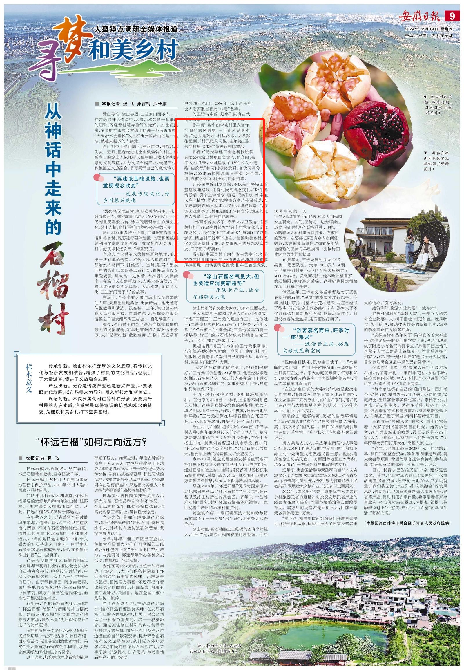 文中指出,項目開工以來,公司建設(shè)了1300米入村道路“白改黑”和兩側(cè)綠化景觀,客貨兩用停車場,900米石榴園段壘石景觀,臥牛潭水塘,石榴文化館,村史館,民俗街等,讓臥牛村的面貌煥然一新。目前,項目建設(shè)已接近尾聲,效果也已逐漸凸顯,不僅基礎(chǔ)設(shè)施更加完善、環(huán)境更加怡人,游客也越來越多,為推動涂山村農(nóng)文旅深度融合發(fā)展做出了重要貢獻(xiàn)。