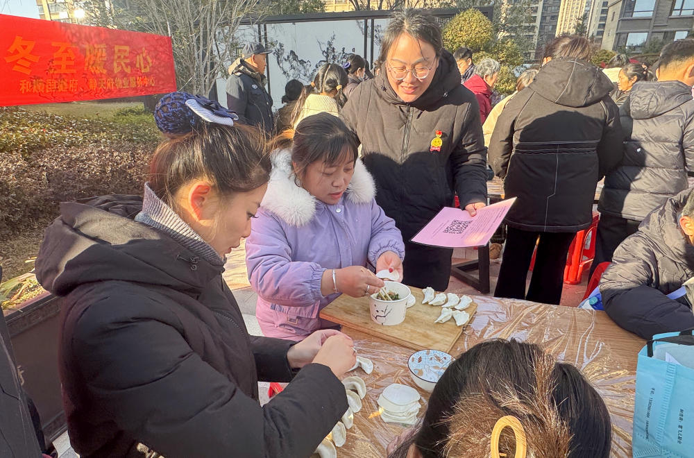 “冬至如大年,人間小團圓”。為深入傳承中華民族傳統(tǒng)文化精髓,進一步提升業(yè)主的生活品質(zhì),在冬至來臨之際,物業(yè)公司第三黨支部組織開展“讓溫暖觸手可及,讓業(yè)主“家”倍溫暖”主題活動,通過一系列細(xì)致入微的暖心服務(wù)舉措,為業(yè)主們帶來冬日里的首份溫情與關(guān)懷。