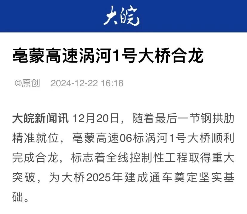 12月20日,隨著最后一節(jié)鋼拱肋精準就位,安徽水利亳蒙高速06標渦河1號大橋順利完成合龍,受到大皖新聞、亳州市交通運輸局官微等關(guān)注報道。
