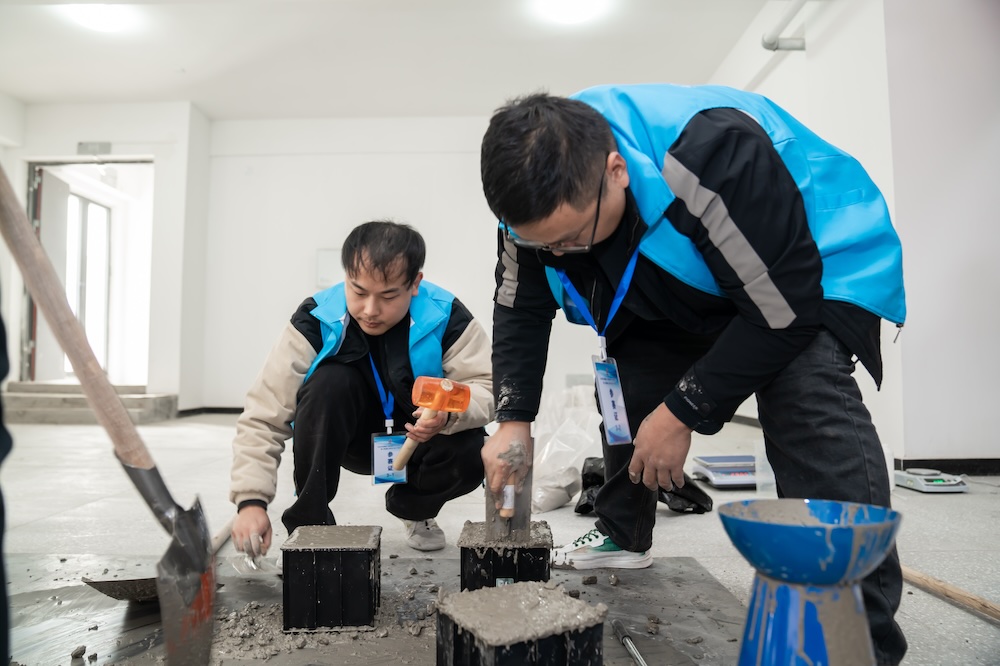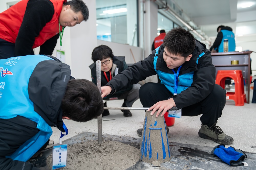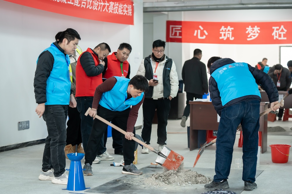技能實(shí)操比賽采用手工拌制混凝土的方法進(jìn)行,評(píng)判內(nèi)容為:混凝土各種原材料的計(jì)量規(guī)范性、混凝土拌制的合理性以及拌和物主要性能試驗(yàn)的規(guī)范性和準(zhǔn)確性。試驗(yàn)項(xiàng)目為:坍落度、擴(kuò)展度,離析與泌水目測,立方體抗壓強(qiáng)度試件等。競賽結(jié)果將在測試完混凝土28d立方體抗壓強(qiáng)度后經(jīng)綜合評(píng)分后,由組委會(huì)再公布大賽最終排名。
