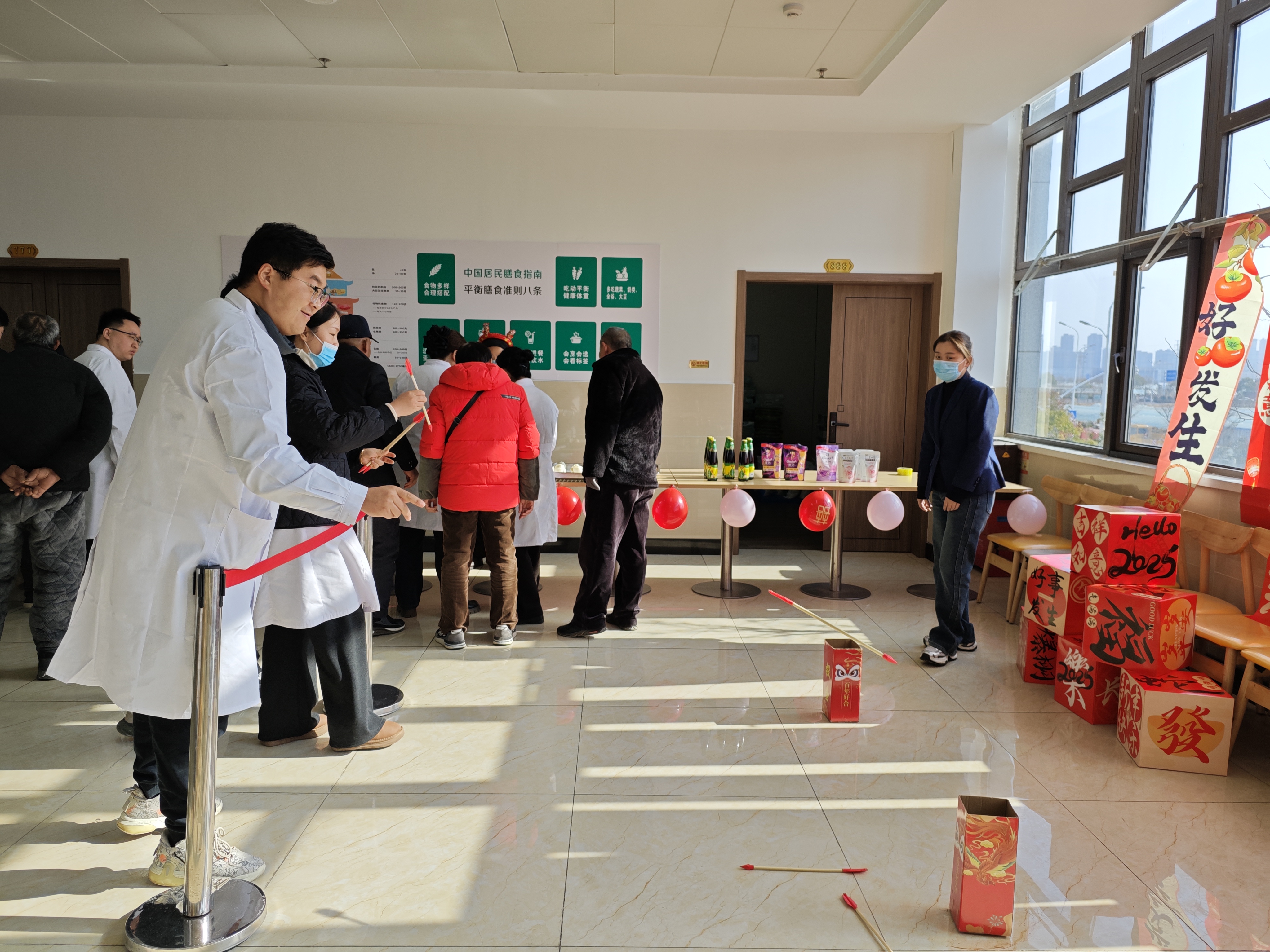 活動(dòng)現(xiàn)場(chǎng),食堂精心準(zhǔn)備了各式各樣的美食,包括香氣四溢的鹵味、新鮮可口的菜肴,供大家自由選購;還免費(fèi)提供新鮮的水果和五顏六色的果蔬小饅頭,供大家品嘗。在品嘗美食的同時(shí),還能參與游戲——“投壺納?!保@得獎(jiǎng)品?!皦亍迸c“?!笔侵C音,寓意著大家在新的一年里福星高照、福氣臨門。醫(yī)院到處洋溢著跨年的喜悅氣氛,大家懷著愉悅的心情,共同迎接新年的到來!