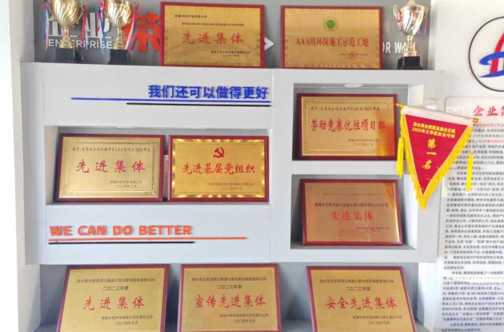 項(xiàng)目先后獲得合肥市交投“2022、2023年度“先進(jìn)集體”榮譽(yù)稱號(hào)、安徽建工2024上半年“流動(dòng)紅旗”黨組織項(xiàng)目部、安徽水利“先進(jìn)集體、勞動(dòng)競賽優(yōu)勝項(xiàng)目部”“先進(jìn)基層黨組織”等榮譽(yù)稱號(hào)。