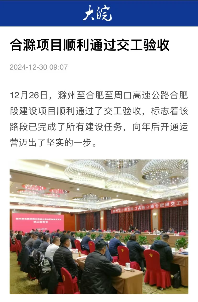 近日,安徽水利滁州至合肥至周口高速公路合肥段建設(shè)項(xiàng)目順利通過交工驗(yàn)收,標(biāo)志著該路段已完成了所有建設(shè)任務(wù),向年后開通運(yùn)營邁出了堅(jiān)實(shí)一步,受到大皖新聞等媒體關(guān)注報(bào)道。