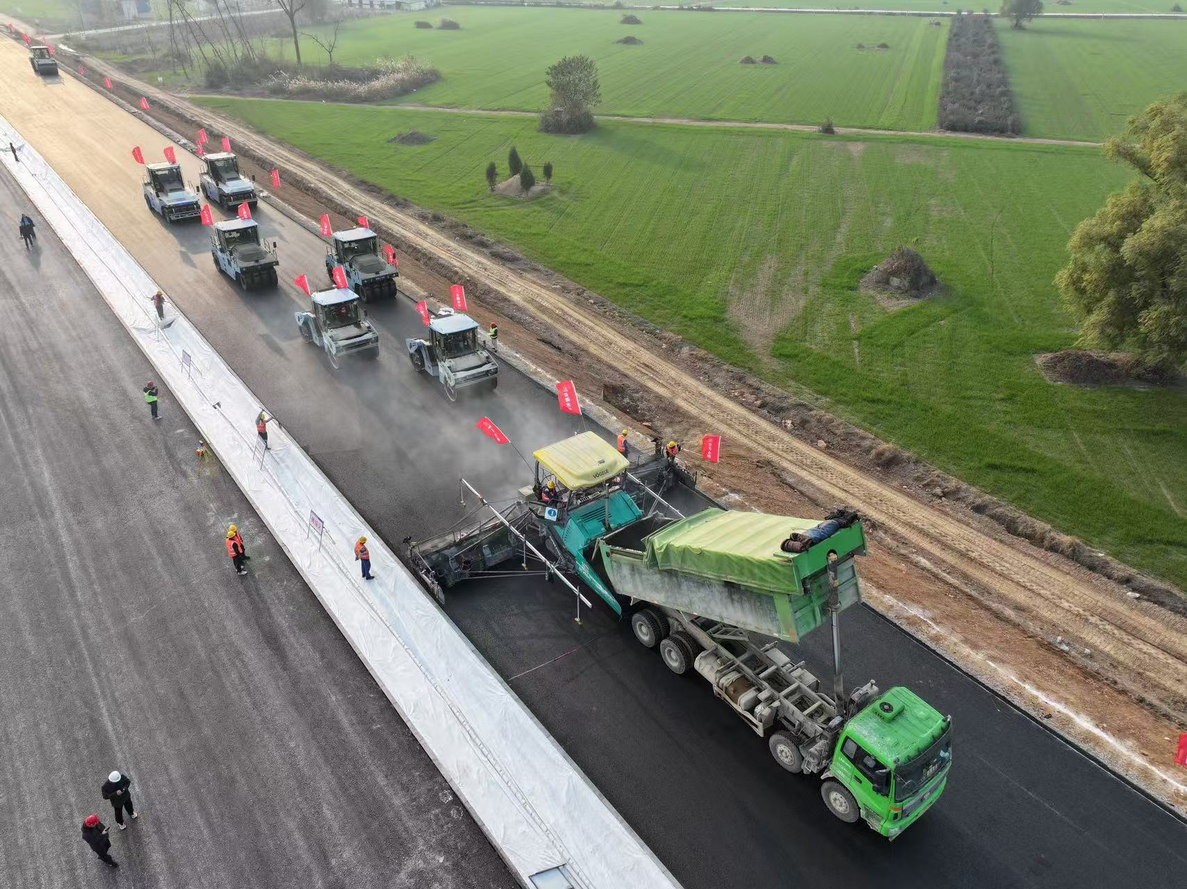 徐淮阜項(xiàng)目建設(shè)一路高歌猛進(jìn),當(dāng)下已成功邁入關(guān)鍵的瀝青上面層施工階段。大型攤鋪機(jī)穩(wěn)步推進(jìn),鏗鏘有力地將溫度高達(dá) 150℃的優(yōu)質(zhì)瀝青均勻鋪展,為道路編織堅(jiān)實(shí)的“外衣”。在全體建設(shè)者爭(zhēng)分奪秒的奮戰(zhàn)下,項(xiàng)目正朝著 2025 年 5 月全面竣工的目標(biāo)全力沖刺。