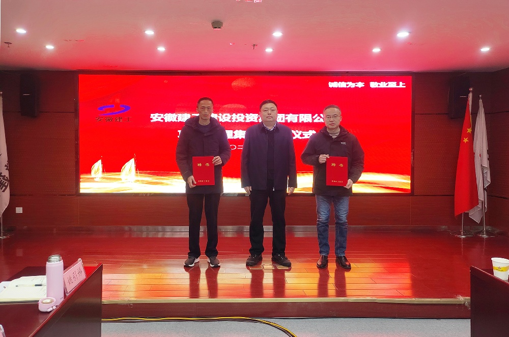 會(huì)上,公司黨委副書記、工會(huì)主席干戈宣讀了《安徽建工集團(tuán)控股有限公司關(guān)于2025年度集團(tuán)項(xiàng)目經(jīng)理分級(jí)聘任的決定》,并傳達(dá)了楊善斌書記在集團(tuán)項(xiàng)目經(jīng)理集中聘任儀式上的講話精神。公司領(lǐng)導(dǎo)為項(xiàng)目經(jīng)理代表頒發(fā)聘書。
