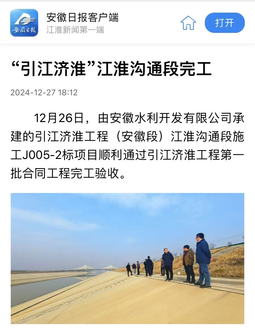 近日,安徽水利引江濟(jì)淮工程(安徽段)江淮溝通段施工J005-2標(biāo)項(xiàng)目順利通過(guò)引江濟(jì)淮工程第一批合同工程完工驗(yàn)收,受到安徽日?qǐng)?bào)等媒體關(guān)注報(bào)道。