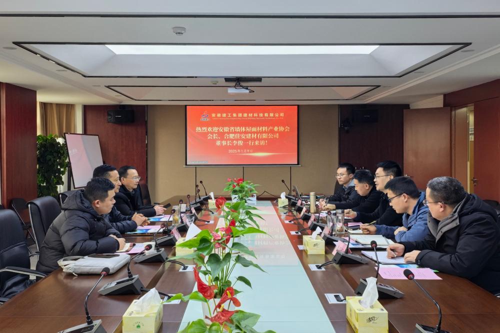 1月9日下午,安徽省墻體屋面材料產(chǎn)業(yè)協(xié)會(huì)會(huì)長(zhǎng)、合肥佳安建材有限公司董事長(zhǎng)李俊一行到訪(fǎng)建工建材,公司黨委副書(shū)記、董事、副總經(jīng)理李鑫熱情接待。