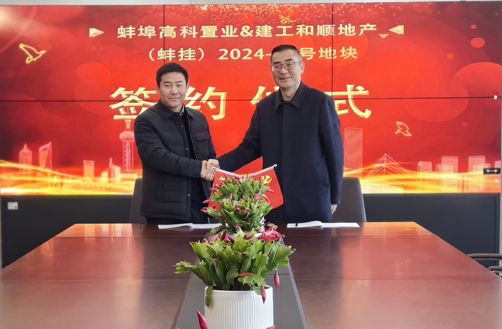 1月20日上午,長(zhǎng)城置業(yè)所屬建工和順與蚌埠高科置業(yè)在蚌埠高投集團(tuán)會(huì)議室就(蚌掛)2024-41號(hào)地塊舉行了簽訂儀式。建工和順黨支部書記、總經(jīng)理聶榮兵,蚌埠高新投資集團(tuán)副總經(jīng)理、高科置業(yè)法定代表人陳輝出席簽約儀式。
