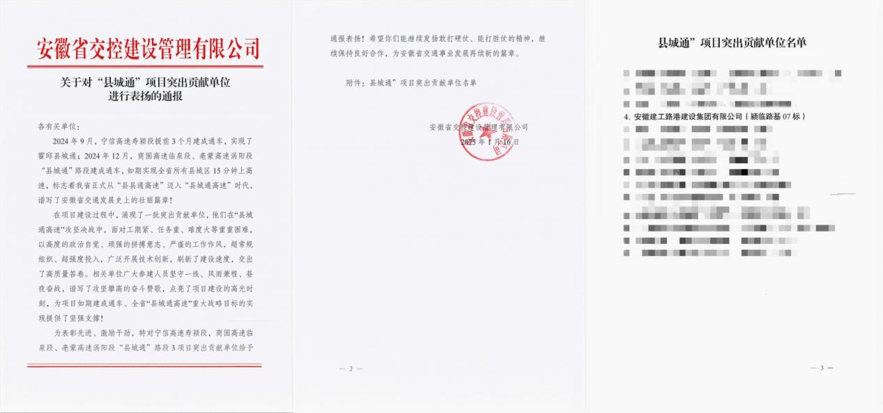 近日,建工路港合周高速潁臨路基07標(biāo)“縣城通”段項(xiàng)目收到來自業(yè)主單位安徽省交控建設(shè)管理有限公司的通報表揚(yáng)。