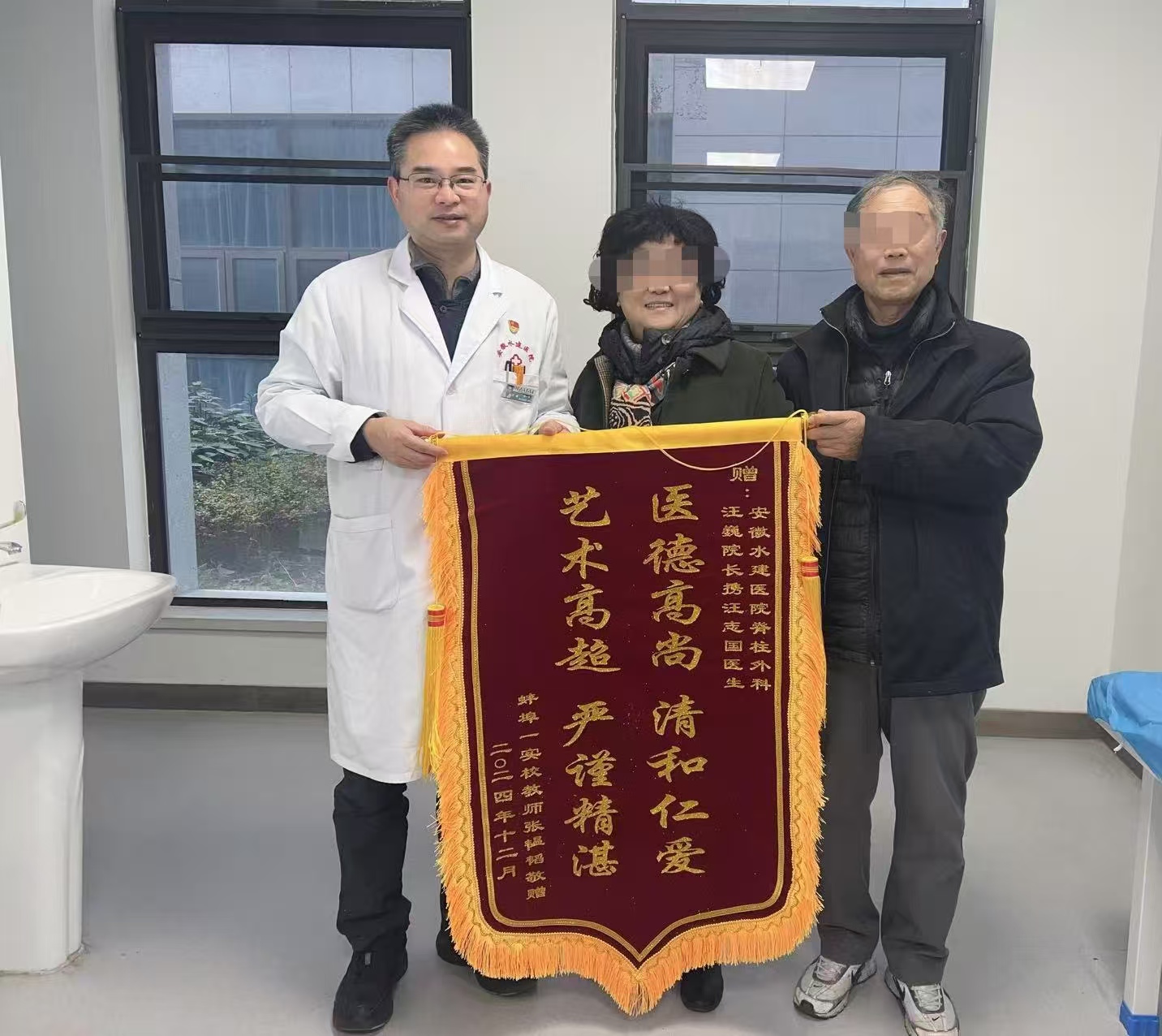 為感謝汪院長及全體醫(yī)護人員的精心治療和護理,張女士和家屬特意送來一面錦旗,以表達感激之情!