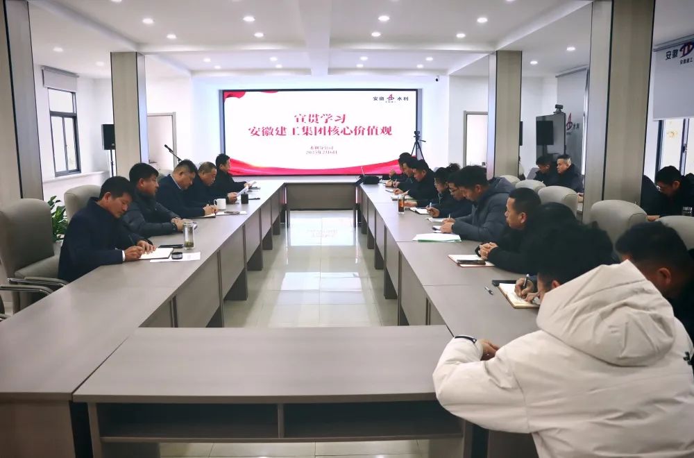 近日,安徽建工集團(tuán)發(fā)布“誠(chéng)信共贏、卓越創(chuàng)新、忠誠(chéng)擔(dān)當(dāng)、敬業(yè)清正”的企業(yè)核心價(jià)值觀。安徽水利黨委積極響應(yīng)集團(tuán)號(hào)召,立即行動(dòng),迅速部署,利用“三會(huì)一課”、網(wǎng)站、宣傳欄等掀起學(xué)習(xí)宣貫熱潮,推動(dòng)集團(tuán)核心價(jià)值觀在公司落地生根。