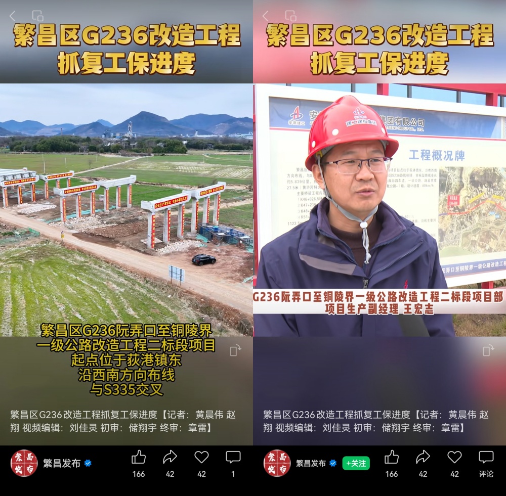 春節(jié)假期剛過,由建工建投集團(tuán)承建的繁昌區(qū)G236項(xiàng)目已全面復(fù)工復(fù)產(chǎn),迅速掀起大干快上“新”熱潮?!胺辈l(fā)布”視頻號(hào)、“繁昌新聞網(wǎng)”深入一線展開報(bào)道。