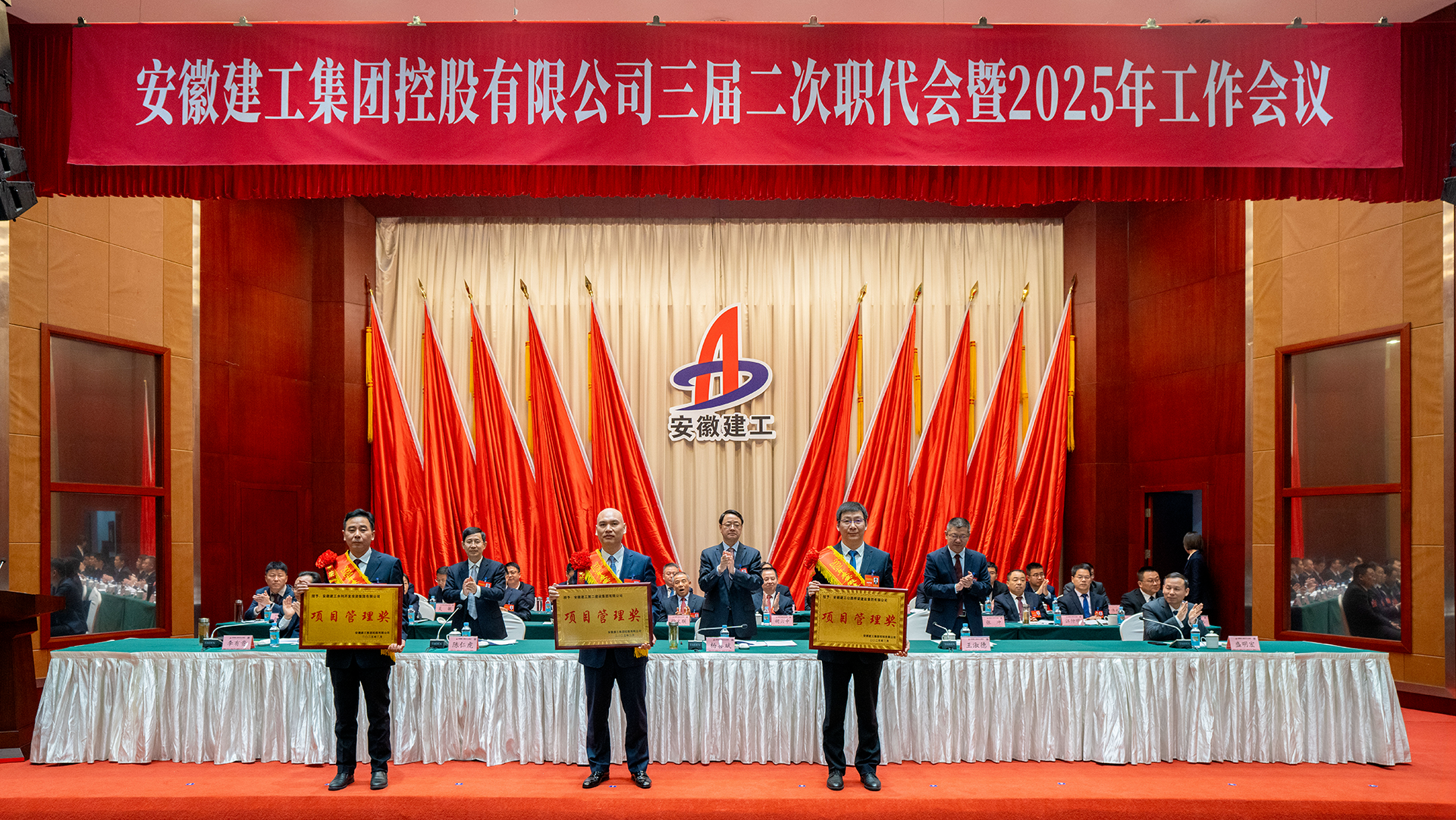 2月9日至12日,安徽建工集團三屆二次職代會暨2025年工作會議在合肥召開,會議期間,對2024年度先進集體和個人進行了表彰。會上,建工水利榮獲集團2024年度“經濟發(fā)展獎”“資產盤活獎”“市場開拓獎”“債權清收獎”“項目管理獎”五個集體獎項、六人獲評集團2024年度優(yōu)秀個人獎。建工股份黨委委員、副總經理、建工水利黨委書記、董事長張鍵、建工水利黨委副書記、總經理杜海峰登臺領獎,張鍵作交流發(fā)言。