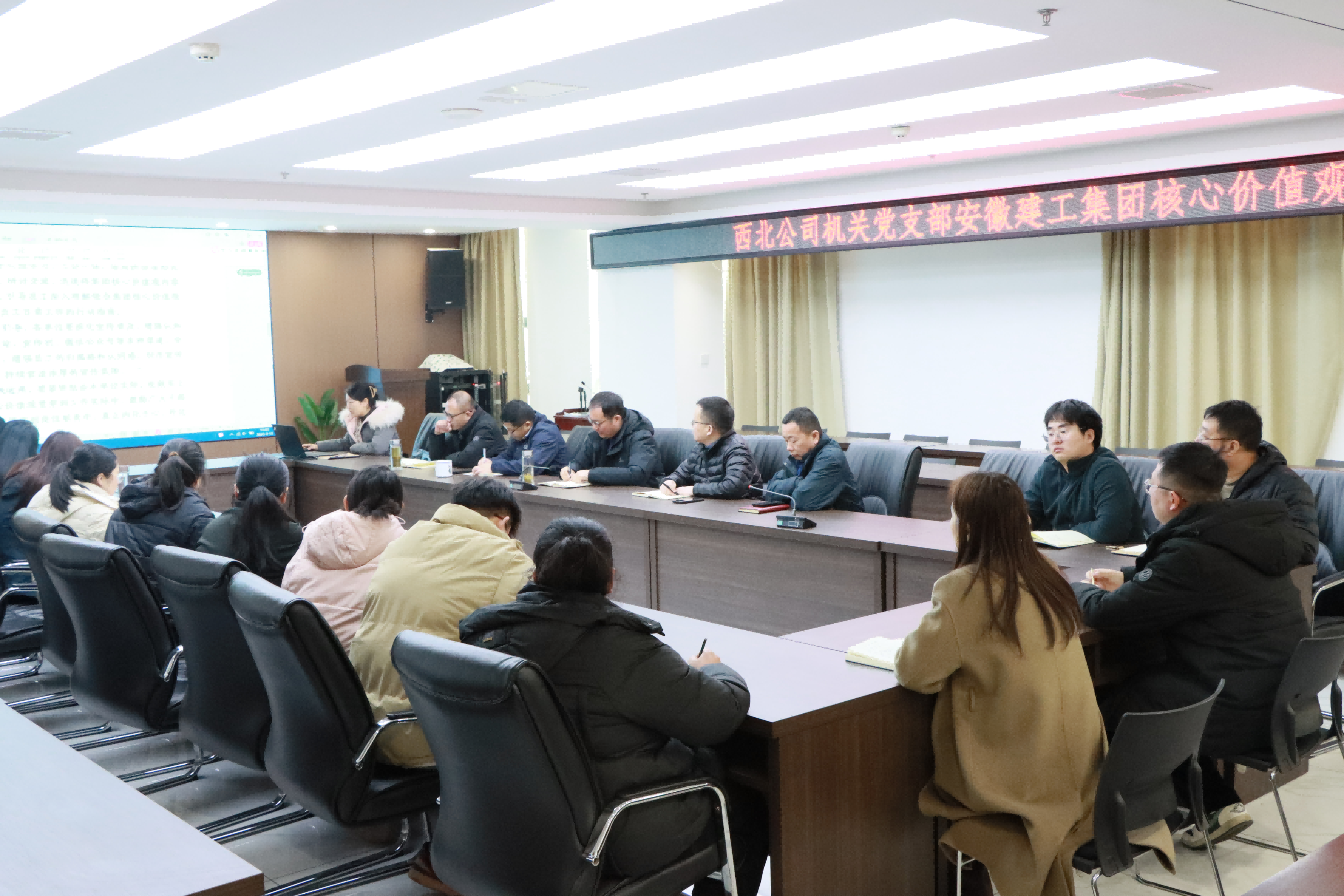 西北公司認真部署、迅速行動,利用“三會一課”、工作會、專題學習會等多種形式和展板、條幅等各類宣傳陣地進一步擴大集團核心價值觀宣貫力度,全面掀起學習熱潮,引導全體職工準確把握集團核心價值觀的精神實質,內化于心、外化于行,將其轉化為推動高質量發(fā)展的蓬勃力量。